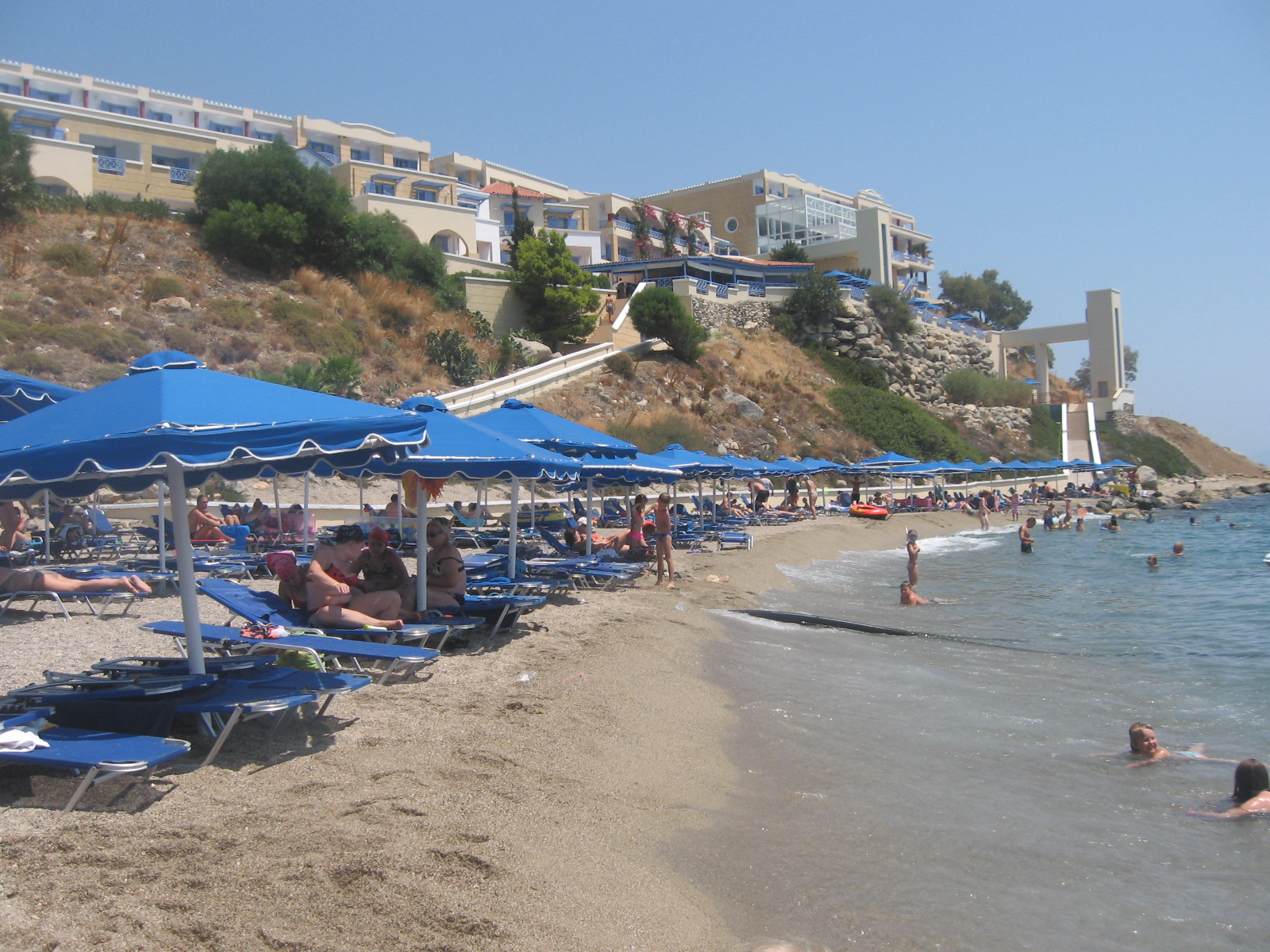 Na szóval egy hétfői napon az esti órákban elhagyta a kifutópályát az a gép, ami elrepített minket a választott úti célunkra. (Görögimádatomhoz hűen ez egy görög sziget volt.)Az út maga zökkenőmentes volt, leszámítva, hogy az utolsó fél órában alig bírtam legyűrni a pánikot, pedig már sokszor repültem, most viszont alig vártam, hogy újra szilárd talajt érezzek a lábam alatt. Nem könnyítette meg a helyzetemet az én felügyeletem alatt lévő és mindvégig igen aktív Zsombor sem, aki a végén nehezen viselte a leszíjazást, de végül szerencsésen földet értünk. Mivel már igen a nap végén jártunk, figyelemmel az időeltolódásra is, igazából semmit nem láttunk a környékből, csak becuccoltunk a szállásunkra és vízszintbe igyekeztünk kerülni.